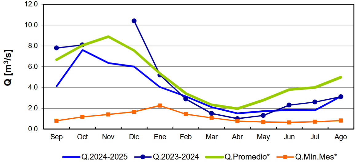 A pesar de los caudales más bajos en comparación con la temporada pasada, no se prevén situaciones de riesgo significativas en cuanto a la disponibilidad de agua para la temporada de riego, que está por comenzar. Se recomienda mantenerse atento a la información de las Asociaciones de Canalistas durante la primavera.