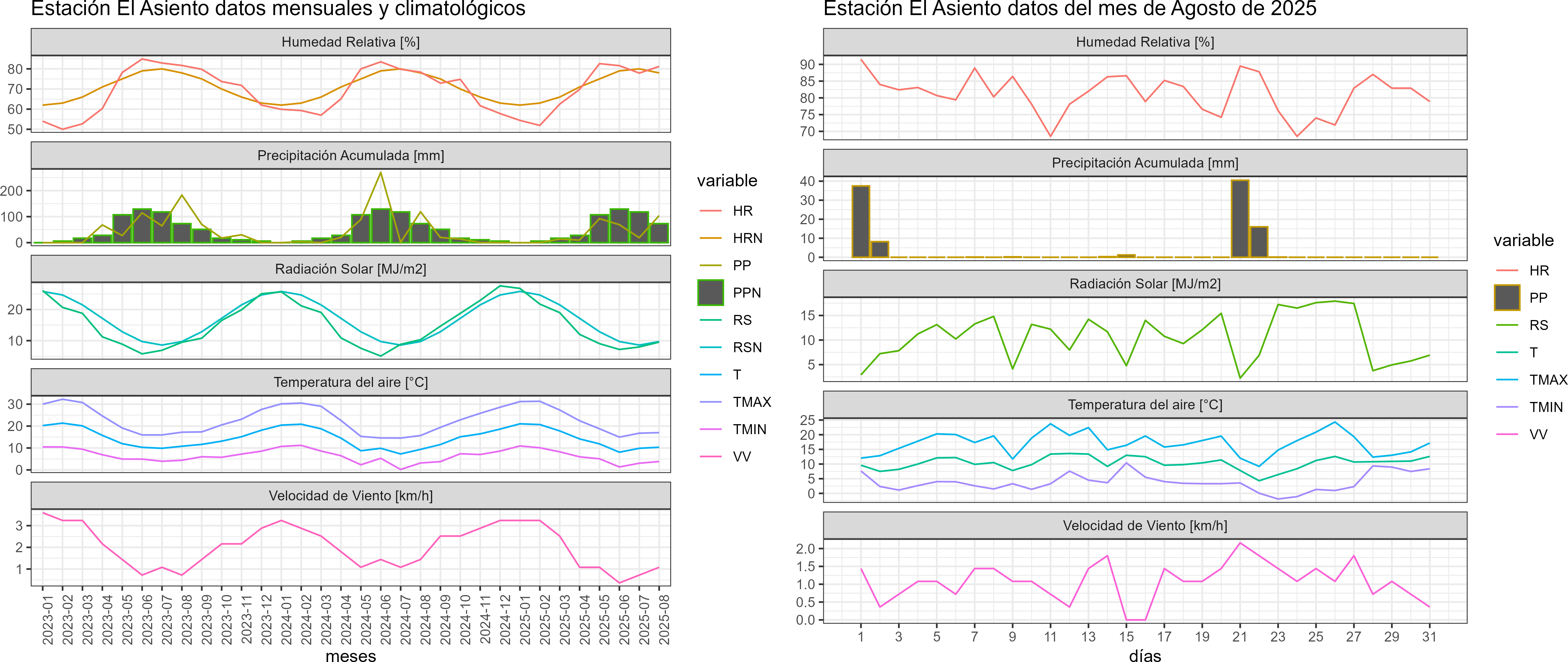 La estación El Asiento corresponde al distrito agroclimático 13-6-1. Para este distrito, los valores climatológicos de referencia son: temperatura mínima de 3,3 °C, media de 9,6 °C y máxima de 16 °C.