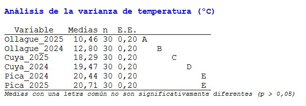 Figura 3.- Comparación de temperaturas medias del mes entre años en Camarones, Pica y Ollague