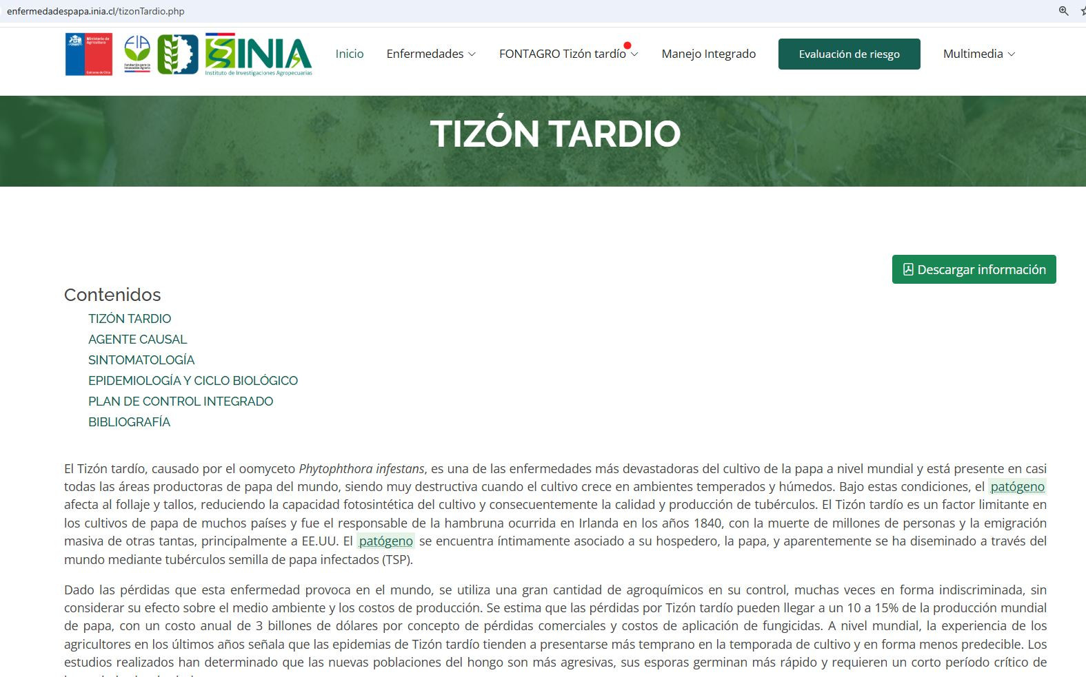 Igualmente, se debería planificar un programa sanitario preventivo para enfermedades foliares, por lo que se recomienda visitar la plataforma http://enfermedadespapa.inia.cl, para información de manejo del cultivo.