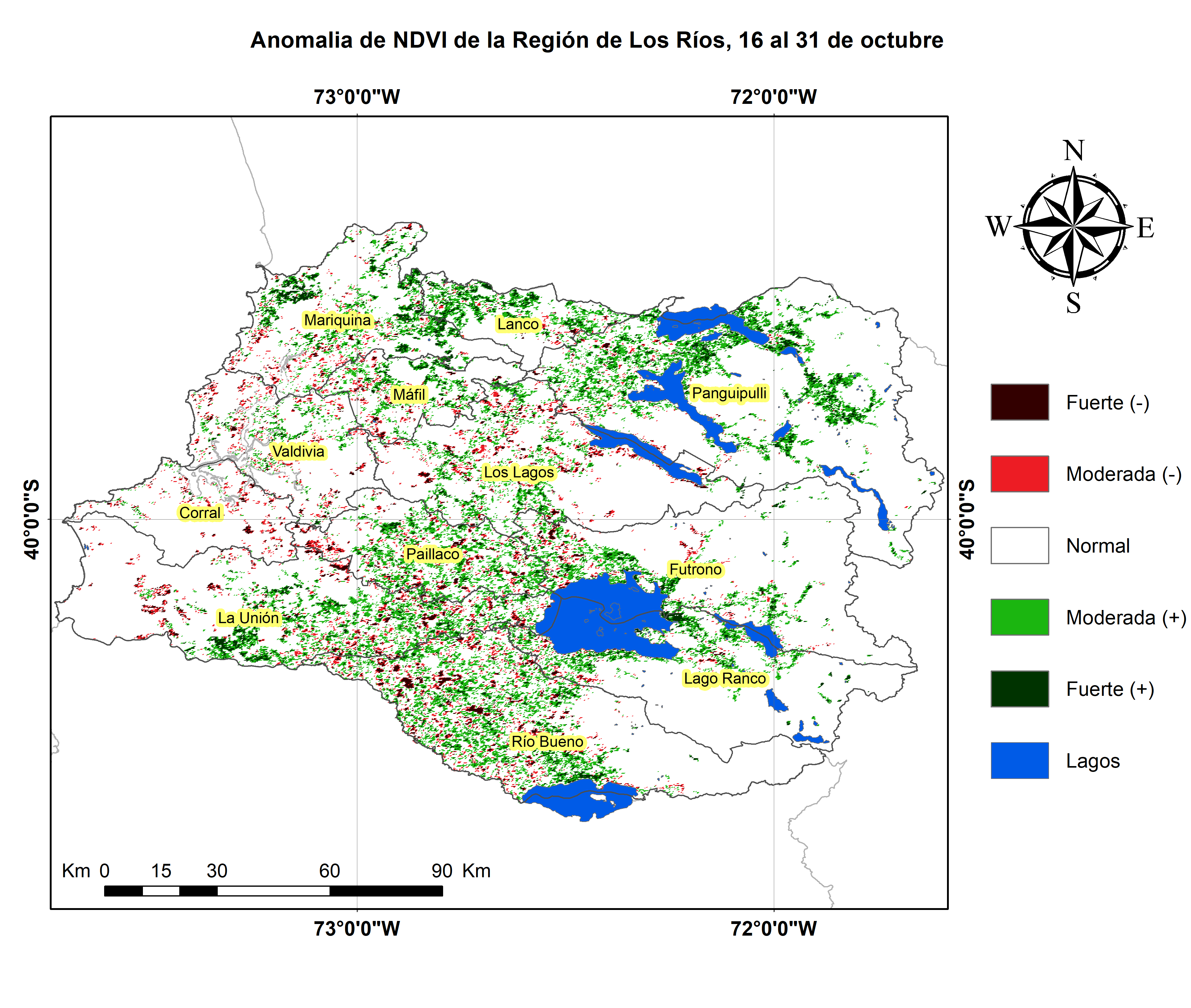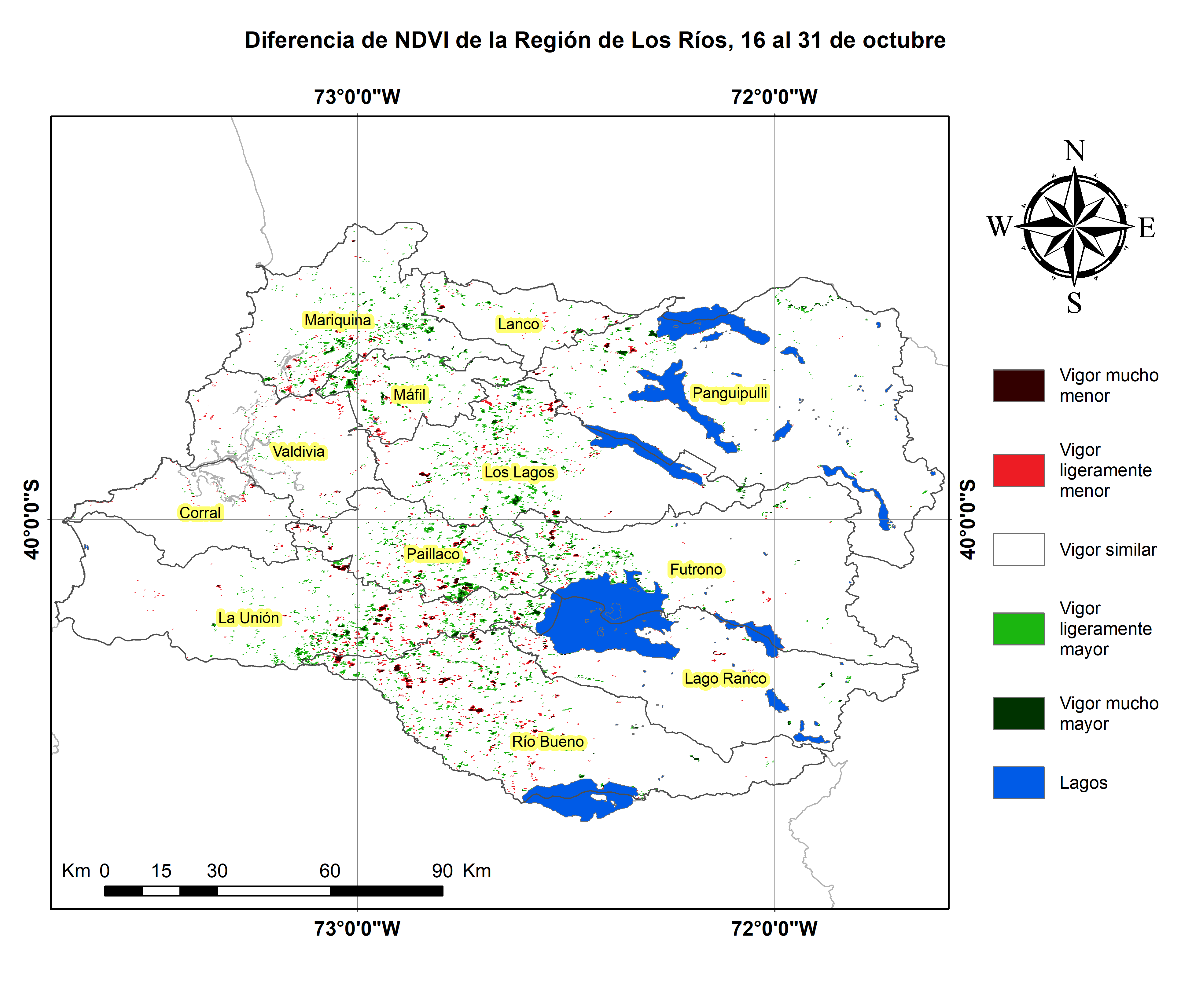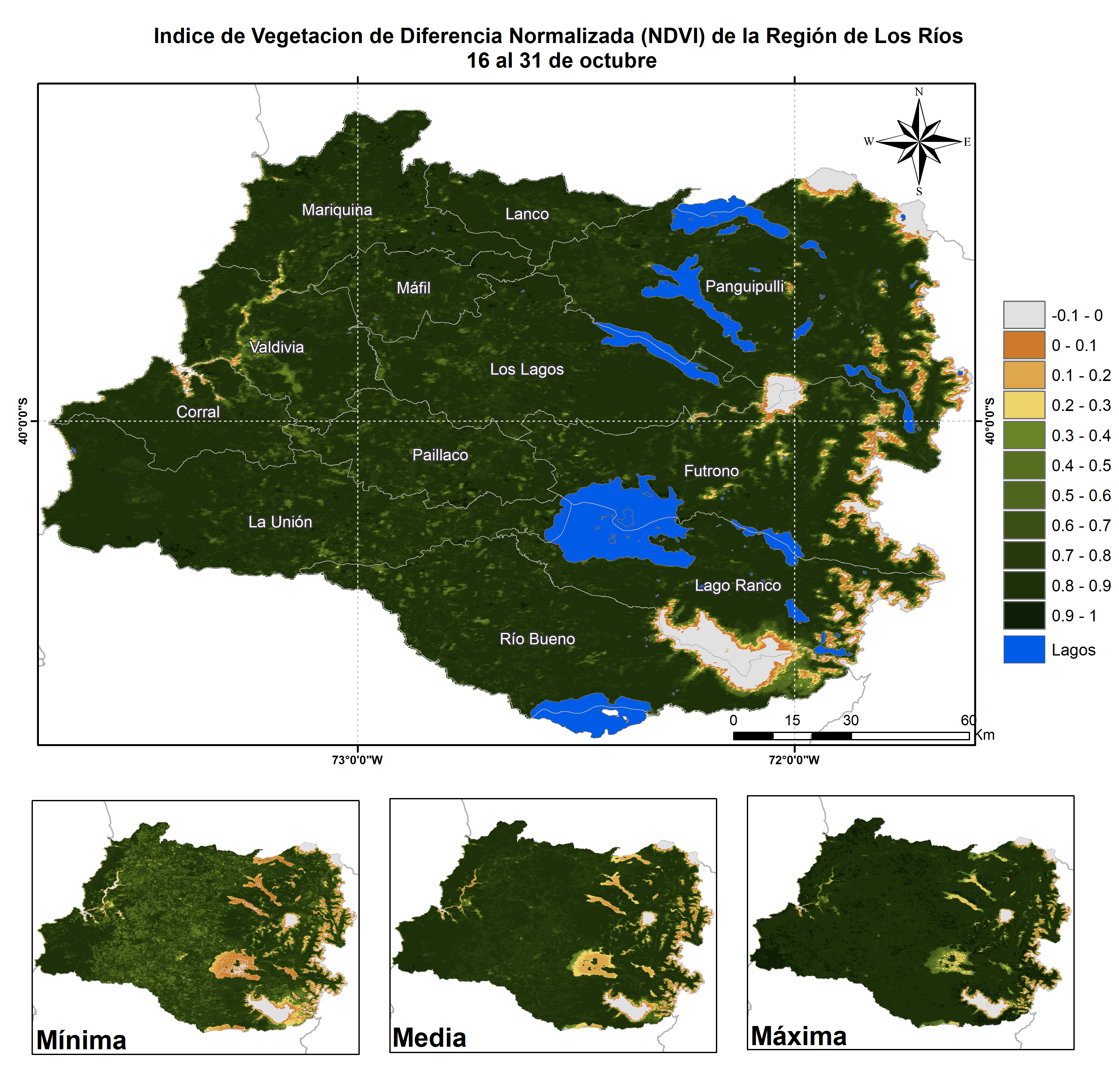 Respecto de la respuesta fisiológica de las plantas al efecto del clima, las imágenes satelitales reflejan la magnitud del crecimiento o disminución de la cobertura vegetal en esta época del año mediante el índice de vegetación NDVI (Desviación Normalizada del Índice de Vegetación).