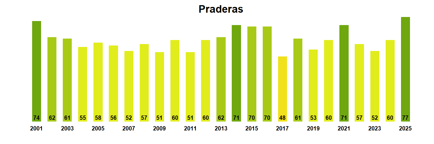 La situación climática actual y dado el estado actual de las praderas, indíca que se podría esperar un fin de primavera con una buena productividad y recuperación post-pastoreo.