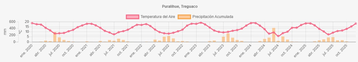 Datos de precipitaciones y temperatura en Puralihue, Treguaco