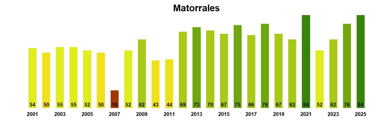 Figura 2. Valores promedio de VCI en Matorrales en la Región de La Araucanía