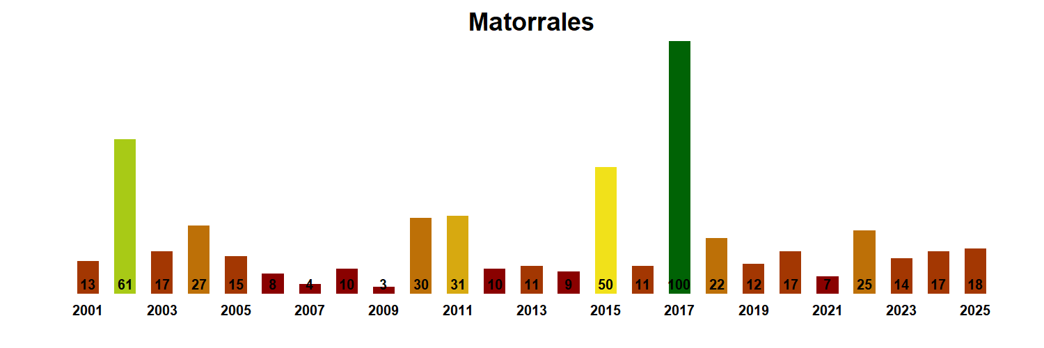 Figura 2. Valores promedio de VCI en Matorrales en la Región de Atacama
