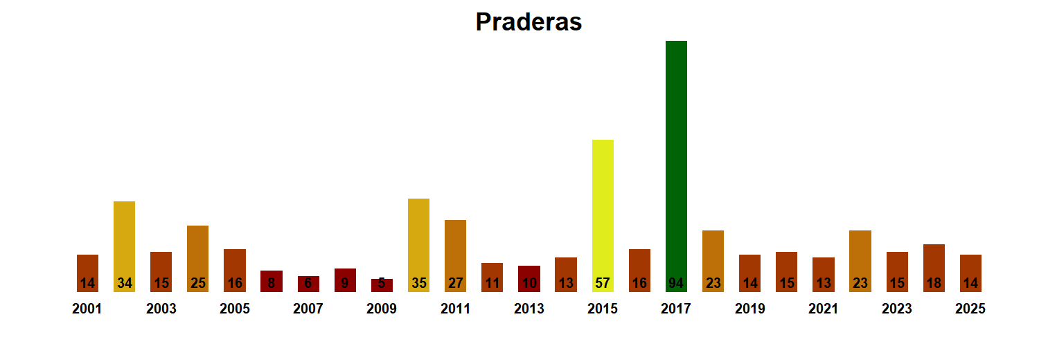 Figura 3. Valores promedio de VCI en praderas en la Región de Atacama