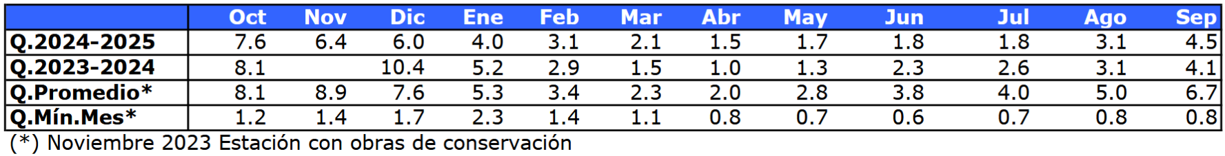 | Río | Septiembre 2025 (m³/s) |