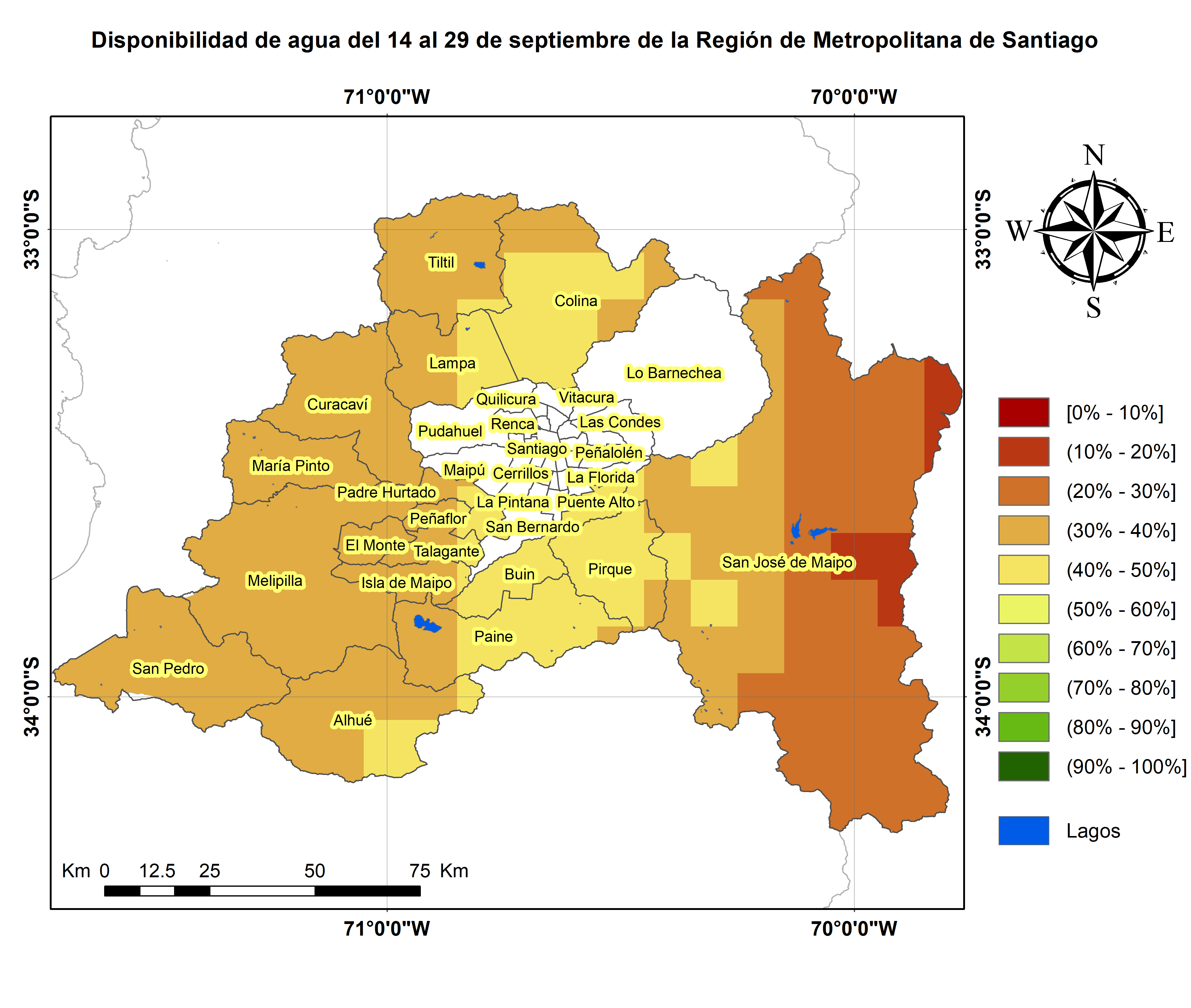 Considerando la precipitación normal para este período se puede interpretar que la Región presenta un déficit del 30% . Considerar que el mes pasado registró un déficit para la época del 29% .