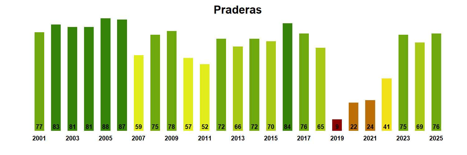 La pradera natural presenta una adecuado crecimiento estimulado por el incremento gradual de las temperaturas y la humedad residual existente en el suelo. Por tanto existe una adecuada disponibilidad de forraje para sistemas de pastoreo extensivo que se prolongará durante la primavera e inicios del verano.