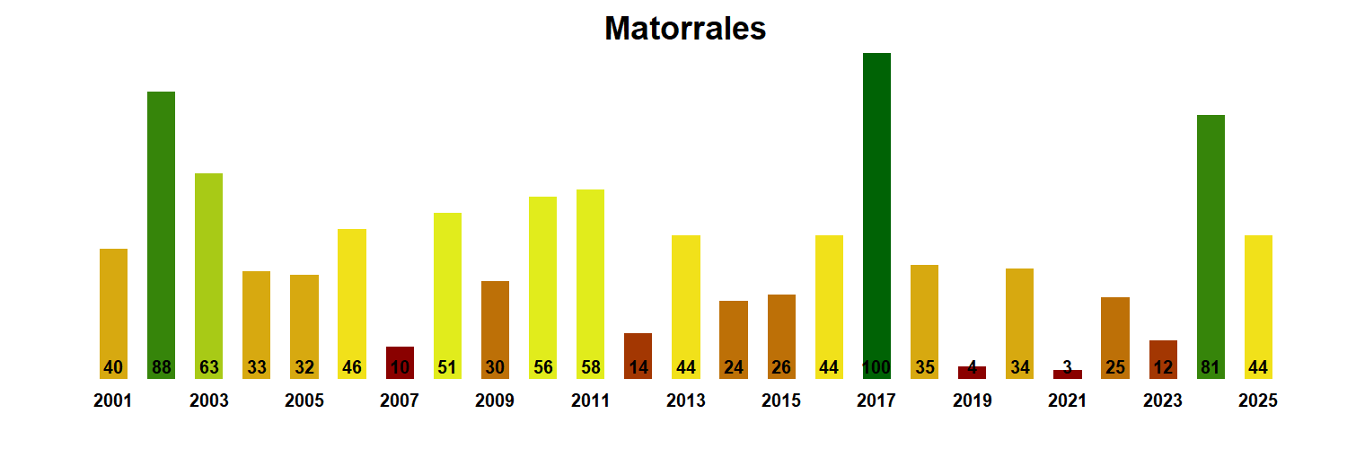 Figura 2. Valores promedio de VCI en Matorrales en la Región de Coquimbo