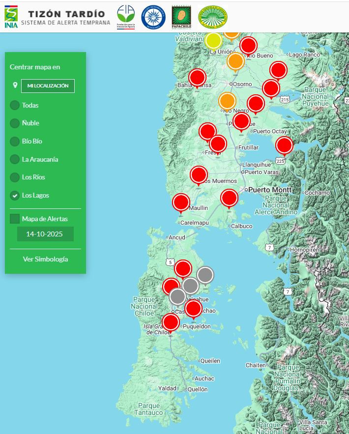 En la Región de Los Lagos el establecimiento del cultivo de papa está iniciando lentamente, dado las precipitaciones intensas en forma de chubascos que han predominado durante septiembre e inicios de octubre, lo que ha impedido la preparación de suelo y las labores de plantación. El pronóstico trimestral indica que la temporada se presentará con precipitaciones bajo lo normal, con temperaturas normal a sobre lo normal. Esta condición indica que hay altas probabilidades de tener una temporada con alto déficit hídrico. Dado lo anterior se recomienda hacer plantaciones del cultivo de papa lo más temprano posible si no se tiene disponibilidad de riego, para que las plantas tengan mejor disponibilidad de agua durante su desarrollo vegetativo en primavera.