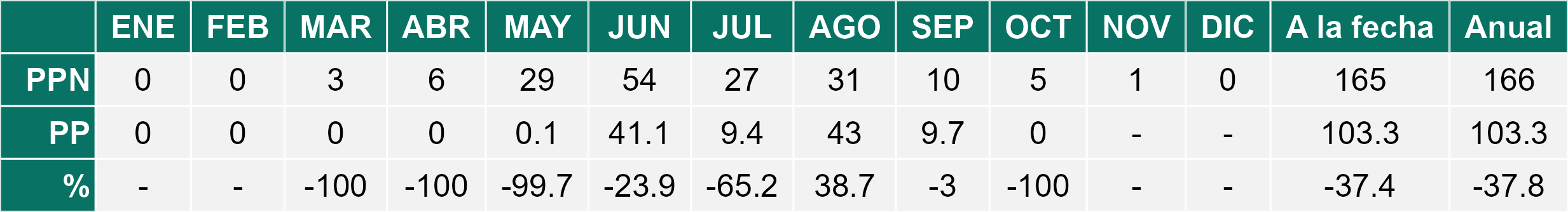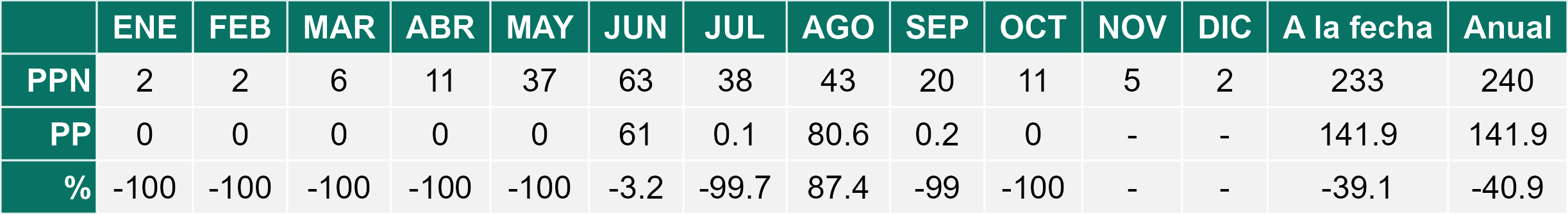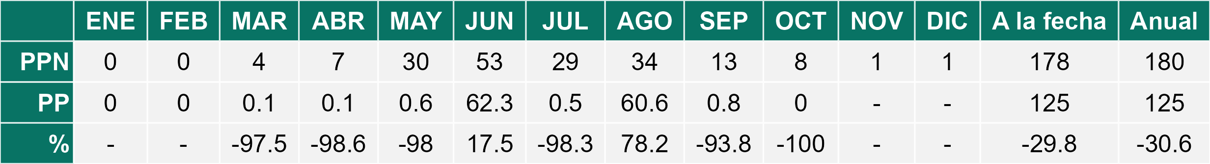 | Río Grande | 2,5 | 5,9 | -57,6% | 4,7 | -46,8% | 2,3 | +8,7% |