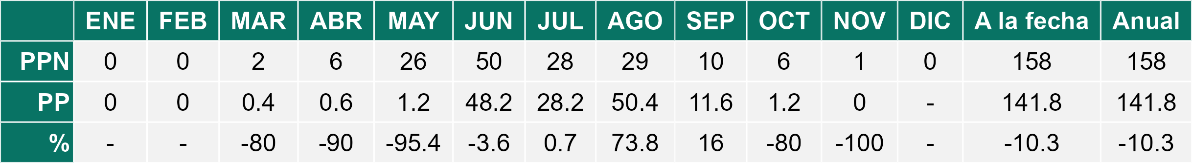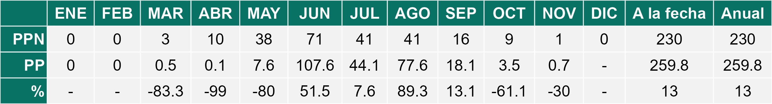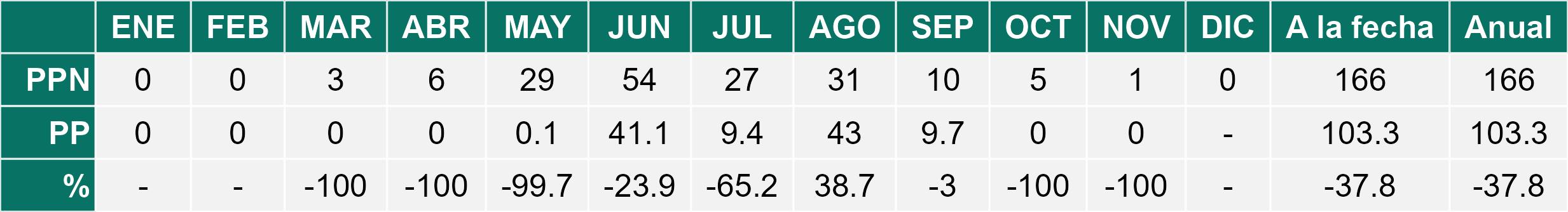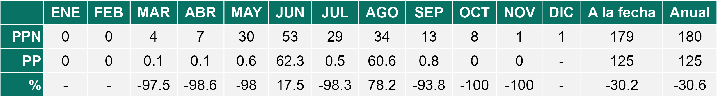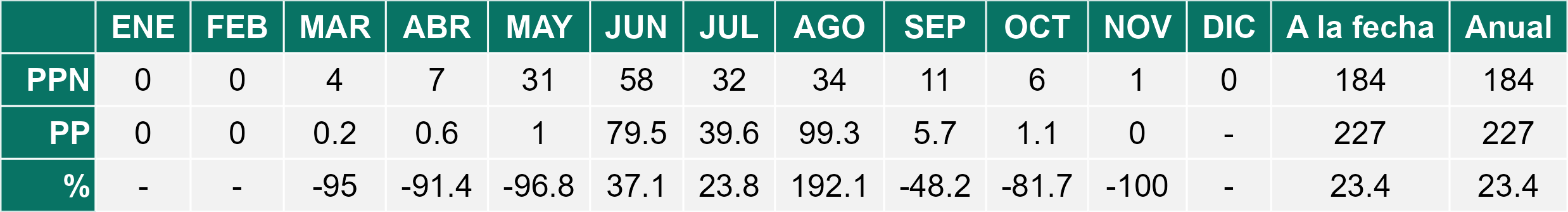 | Río Hurtado | 0,8 | 3,3 | -75,8% | 2,0 | -60,0% | 1,1 | -27,3% |