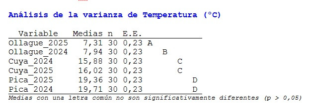En la Región de Tarapacá, la primavera de 2025 transcurre bajo condiciones influenciadas por una fase La Niña moderada, con temperaturas máximas bajo lo normal y mínimas sobre lo normal. La Dirección Meteorológica de Chile prevé ausencia de precipitaciones durante el trimestre octubre-diciembre, situación coherente con el carácter árido del norte grande. Según la Dirección General de Aguas, el altiplano de Tarapacá registra un superávit de 118 % en las precipitaciones acumuladas a septiembre, mientras en el acuífero Pampa del Tamarugal se observa un leve ascenso de 2 cm en Pozo Almonte y un descenso de 6 cm en Salar Bellavista, lo que indica estabilidad general en el recurso subterráneo. La escasa pluviosidad y las bajas temperaturas máximas reducen la evapotranspiración, favoreciendo la gestión hídrica en los oasis y sistemas de riego tecnificado. Se recomienda mantener monitoreo de napas y priorizar cultivos tolerantes a la aridez, como maíz choclero en valles costeros y hortalizas bajo riego controlado.