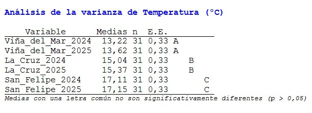 Figura 3.- Comparación de temperaturas medias del mes entre años en Viña del Mar, La Cruz y San Felipe.