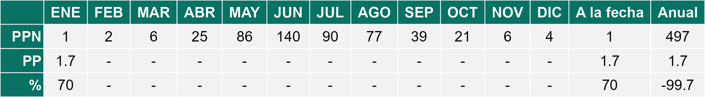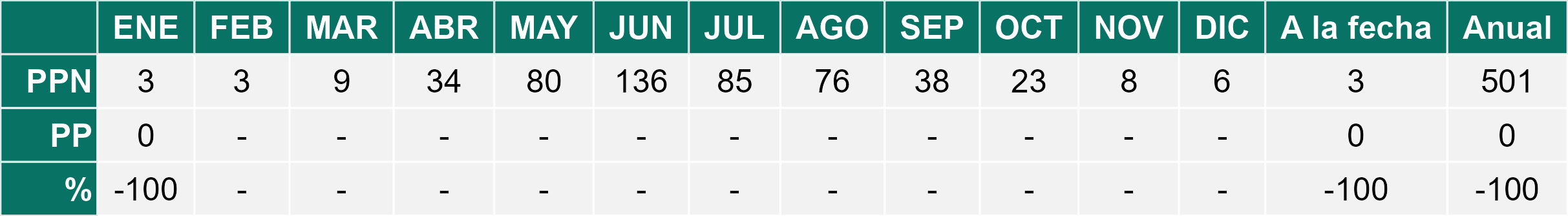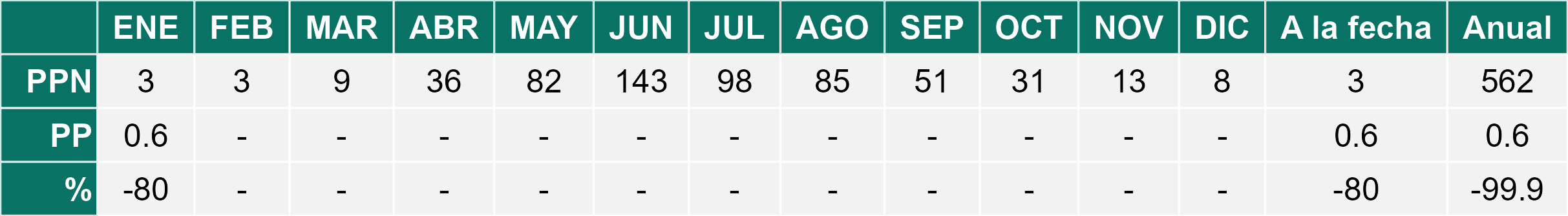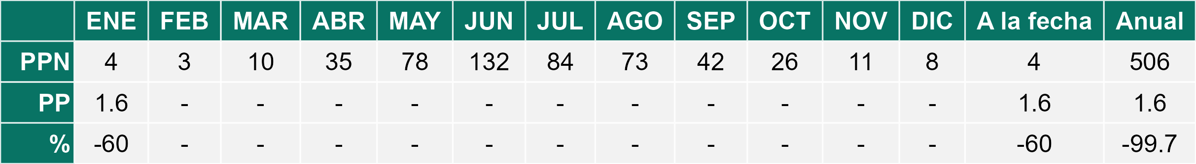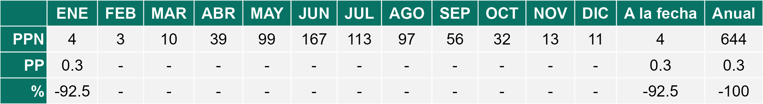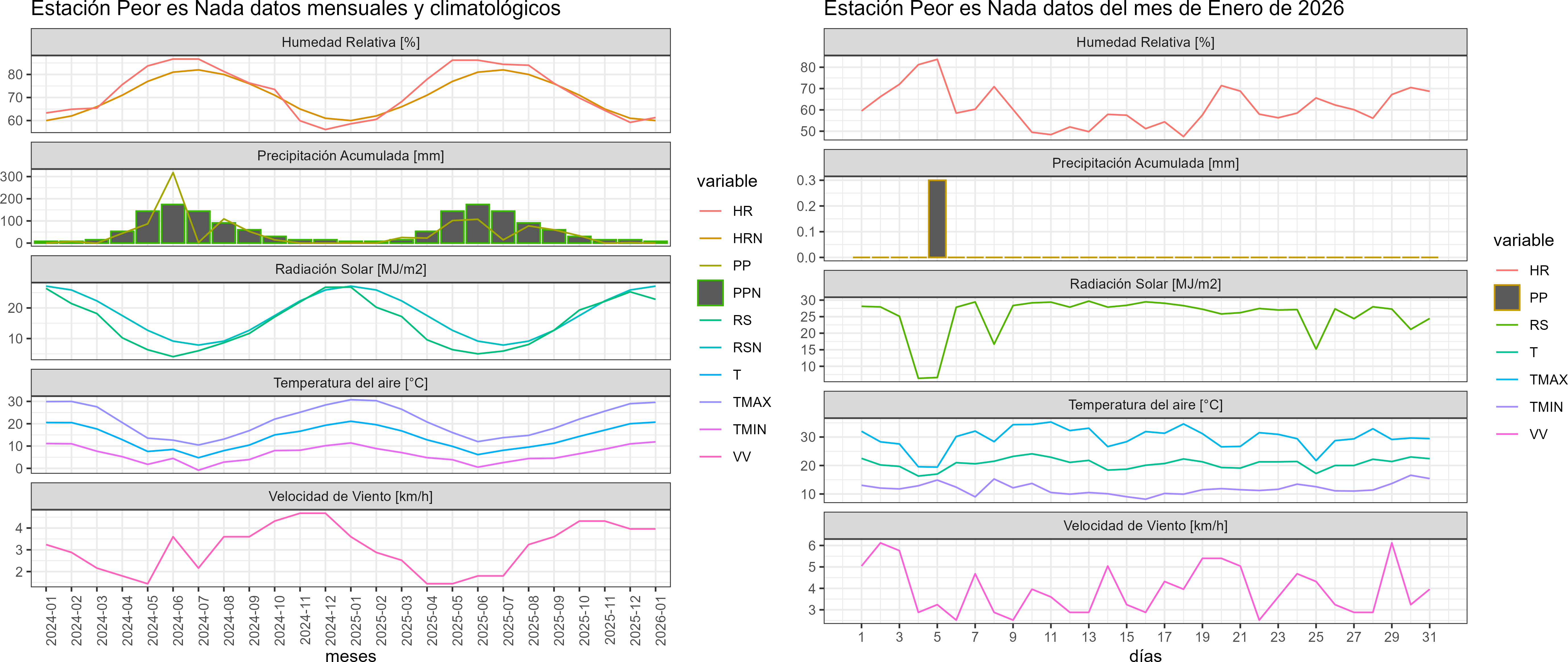 La estación Peor es Nada corresponde al distrito agroclimático 6-7-4. Para este distrito climático la temperatura mínima, media y máxima climatológicas alcanzan los 12°C, 22°C y 32°C respectivamente. Por su parte, respecto a las temperaturas medidas durante el mes de enero en la estación: la temperatura mínima alcanzo los 11.9°C (-0.1°C bajo la climatológica), la temperatura media 20.7°C (-1.3°C bajo la climatológica) y la temperatura máxima llegó a los 29.6°C (-2.4°C bajo la climatológica). En el mes de enero se registró una pluviometría de 0.3 mm, lo cual representa un 7.5% con respecto al mismo mes de un año normal. De enero a enero se ha registrado un total acumulado de 0.3 mm, en circunstancias que un año normal registraría a la fecha 4 mm, lo que representa un déficit de 92.5%. A la misma fecha, durante el año 2024 la precipitación alcanzaba los 0 mm.