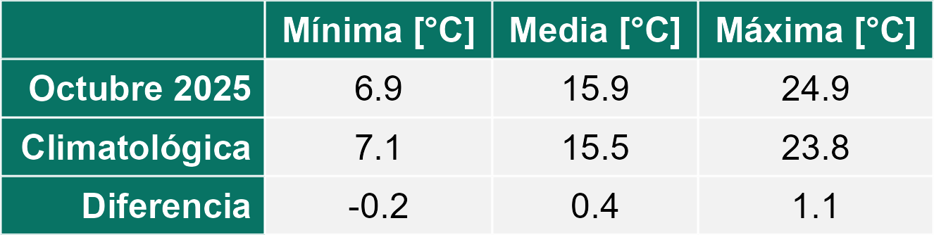 Durante el mes de Octubre se produce un ascenso significativo de las temperaturas máximas medias en 4,1°C para las estaciones representativas de la Región .