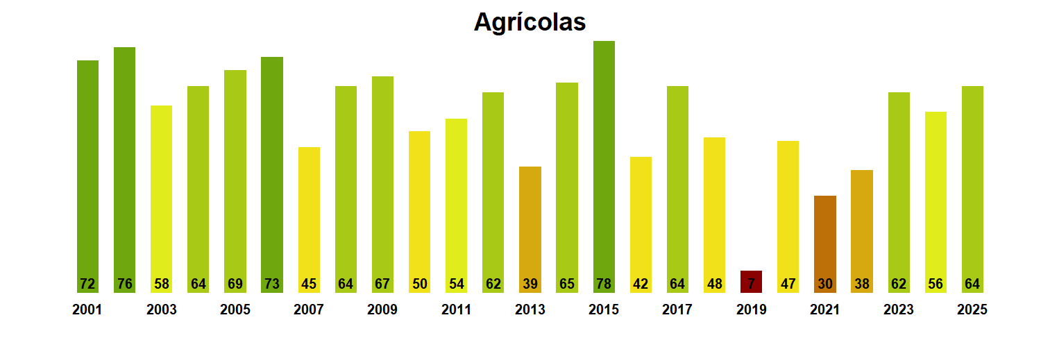 A igual período del año pasado presentaba un VCI de 59% (condición favorable).