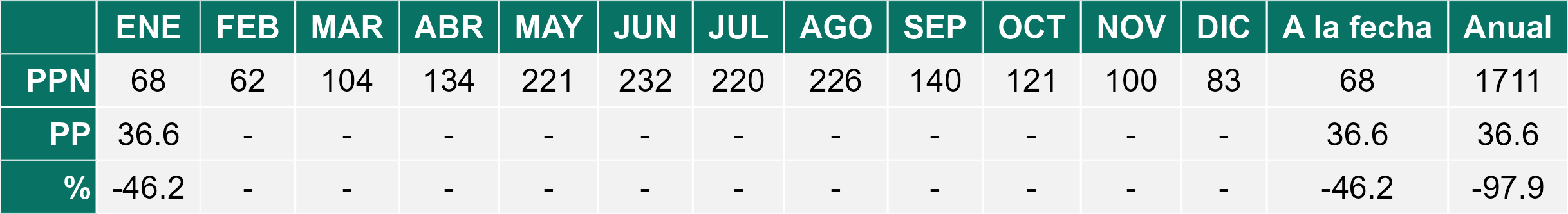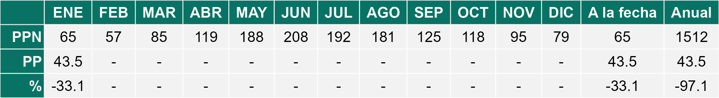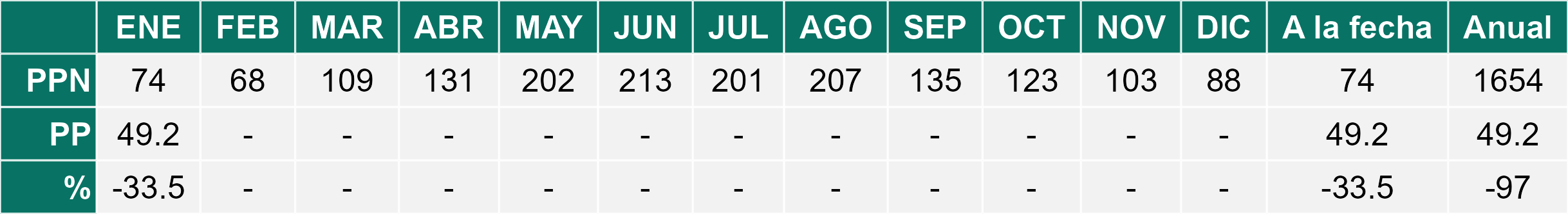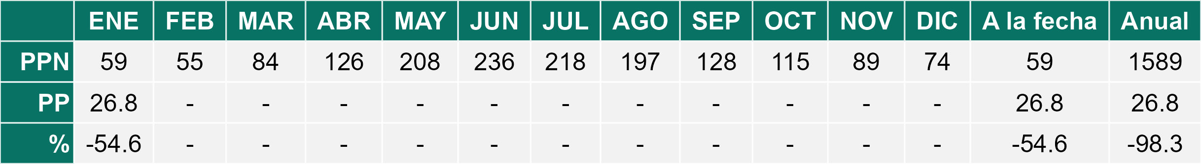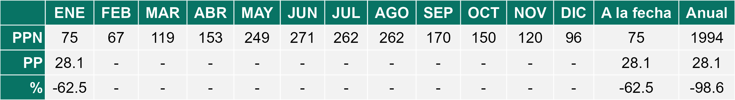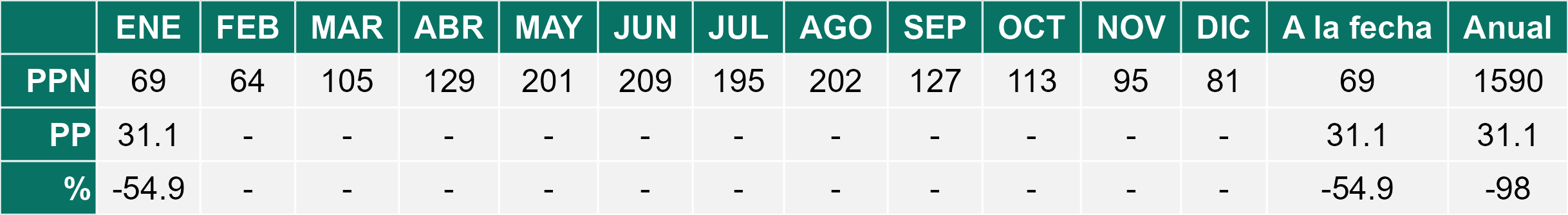 La estación Pid-Pid corresponde al distrito agroclimático 10-4. Para este distrito climático la temperatura mínima, media y máxima climatológicas alcanzan los 7.8°C, 14.2°C y 20.7°C respectivamente. Por su parte, respecto a las temperaturas medidas durante el mes de enero en la estación: la temperatura mínima alcanzo los 9.8°C (2°C sobre la climatológica), la temperatura media 16.3°C (2.1°C sobre la climatológica) y la temperatura máxima llegó a los 22.8°C (2.1°C sobre la climatológica). En el mes de enero se registró una pluviometría de 28.1 mm, lo cual representa un 37.5% con respecto al mismo mes de un año normal. De enero a enero se ha registrado un total acumulado de 28.1 mm, en circunstancias que un año normal registraría a la fecha 75 mm, lo que representa un déficit de 62.5%. A la misma fecha, durante el año 2024 la precipitación alcanzaba los 17 mm.