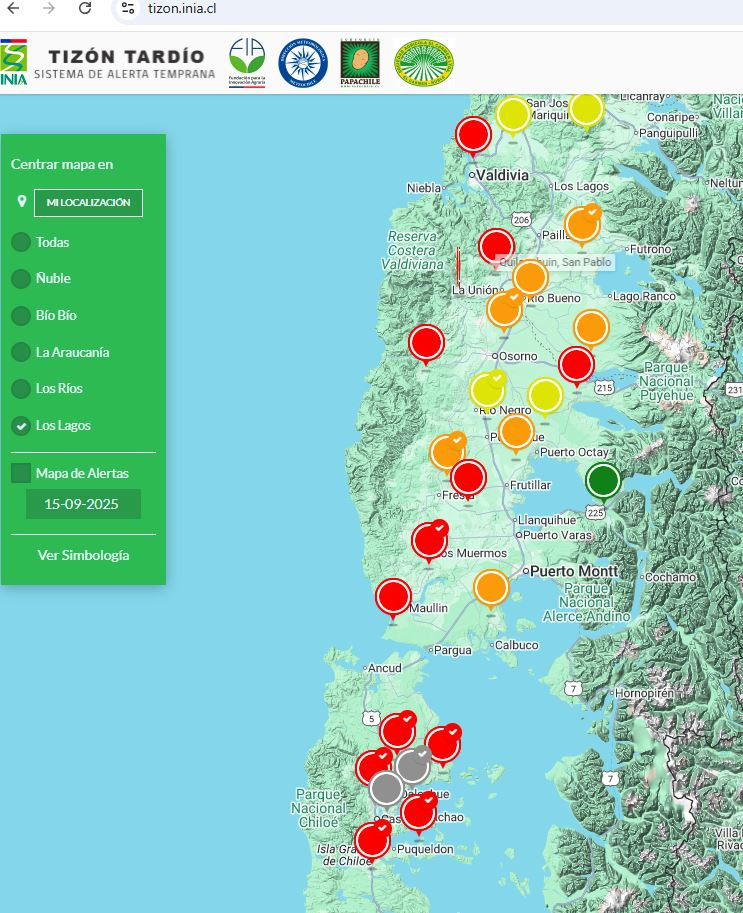Para las plantaciones tempranas, se debe consultar el sistema de alerta temprana para tizón tardío INIA para el manejo de esta enfermedad. El sistema ya ha indicado condiciones apropiadas para la infección de P. infestans desde agosto en adelante. Consulte https://tizon.inia.cl