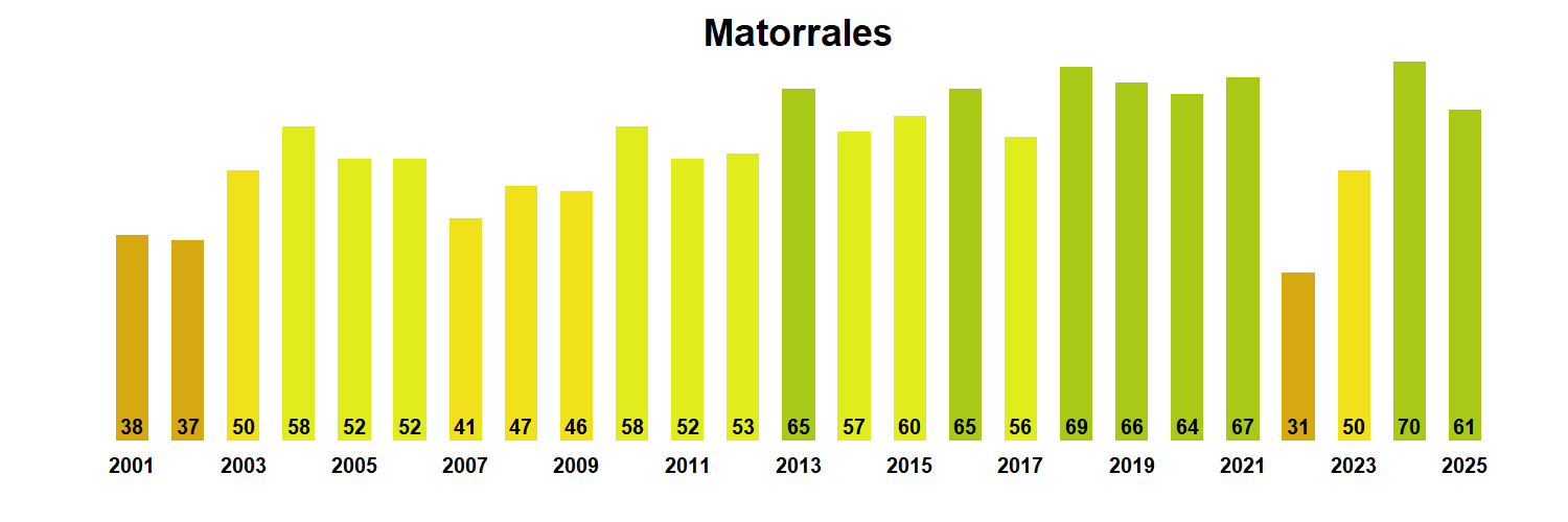 Figura 2. Valores promedio de VCI en Matorrales en la Región de Los Lagos