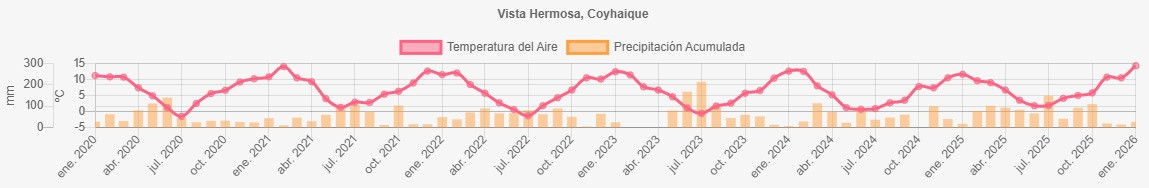Temperaturas y precipitaciones desde 2020 a 2026 en Coyhaique