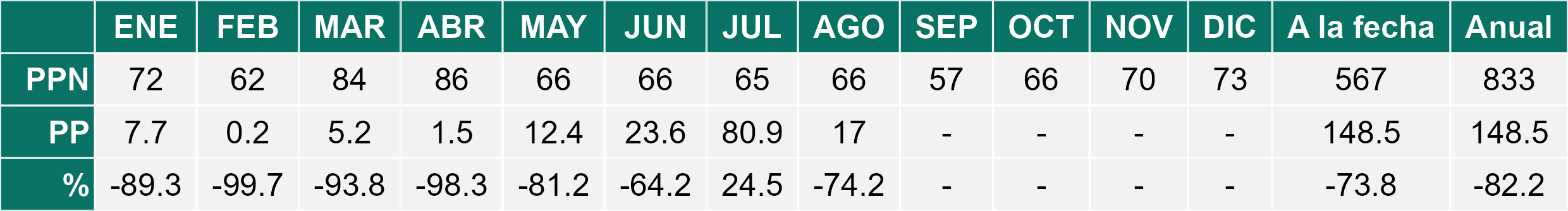 A nivel regional, las temperaturas medias registradas superaron los niveles normales para agosto, mientras que la escasa precipitación caída en el periodo releva la importancia de incorporar sistemas de cosecha de aguas lluvia para el riego de los cultivos.