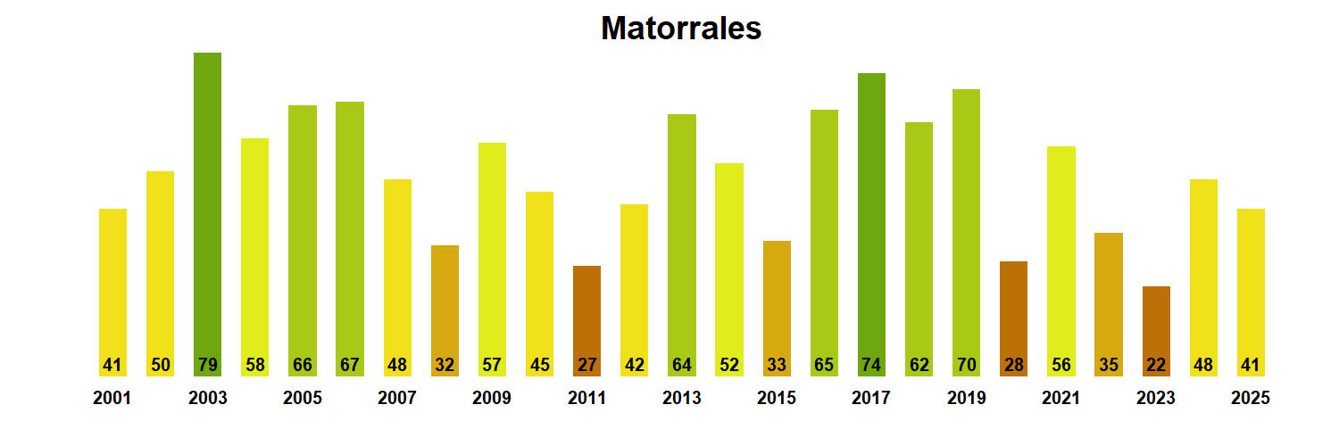 Figura 2. Valores promedio de VCI en Matorrales en la Región de Magallanes