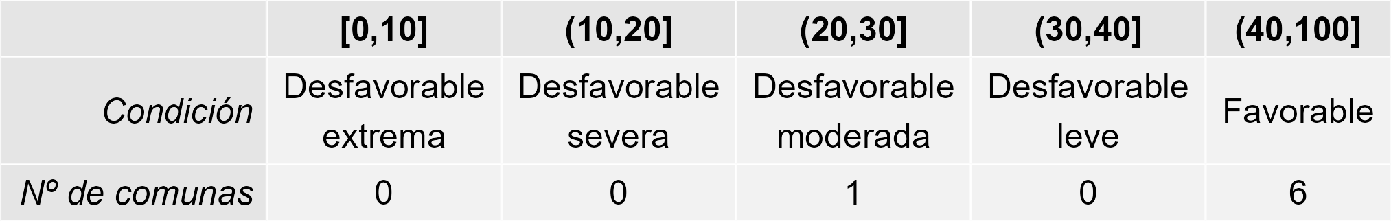 Tabla 2. Resumen de la condición de la vegetación comunal en la Región de acuerdo al análisis del índice VCI.