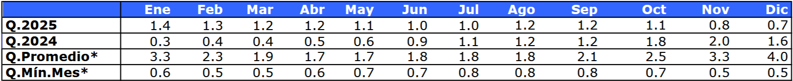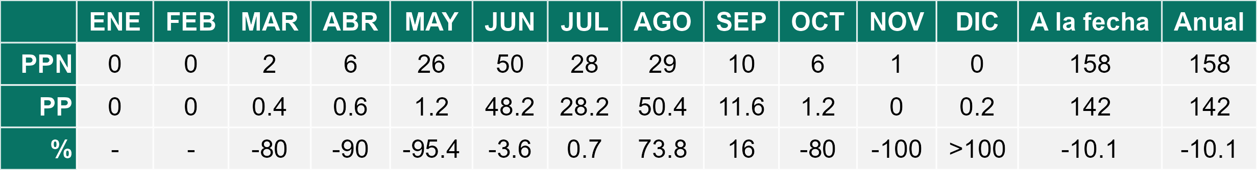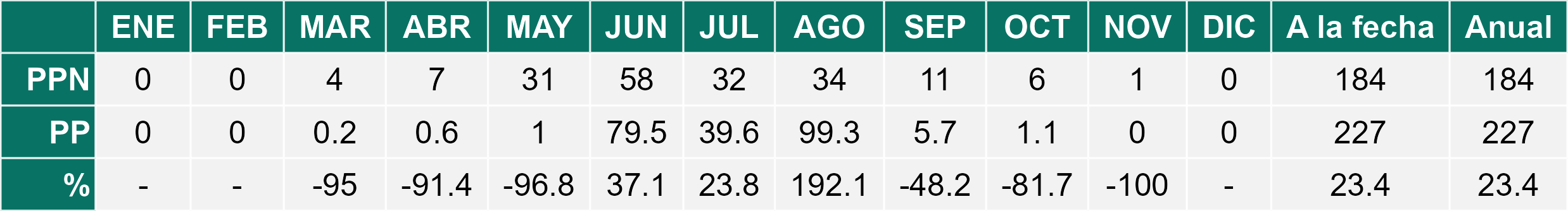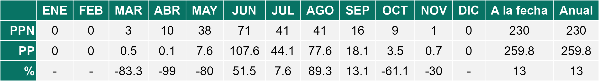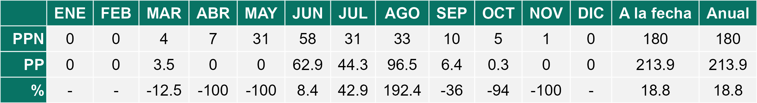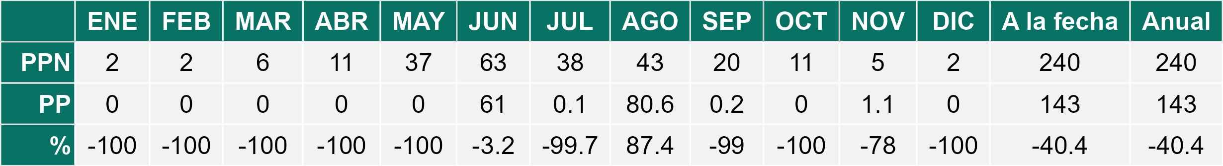 | Río Hurtado | 0,7 | 4,0 | -82,9% | 1,6 | -56,3% | 0,8 | -12,5% |