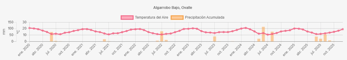 Datos de precipitaciones y temperatura en Algarrobo bajo, Ovalle