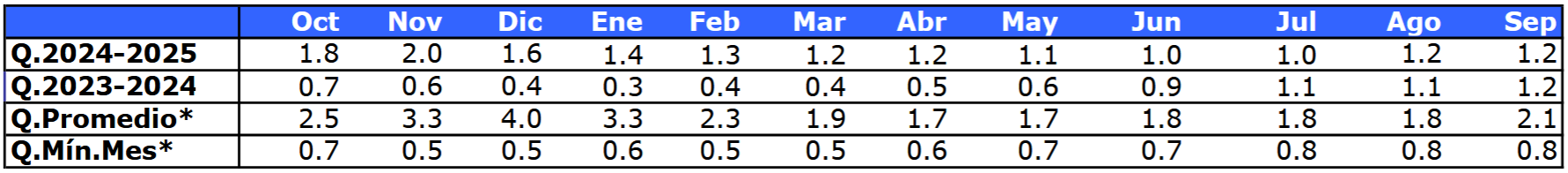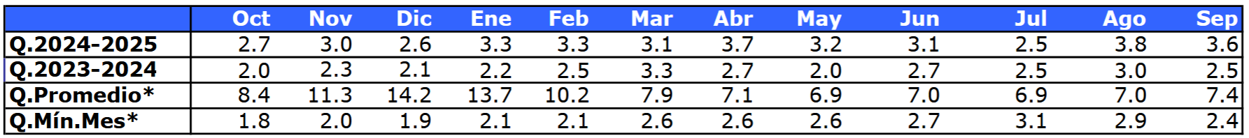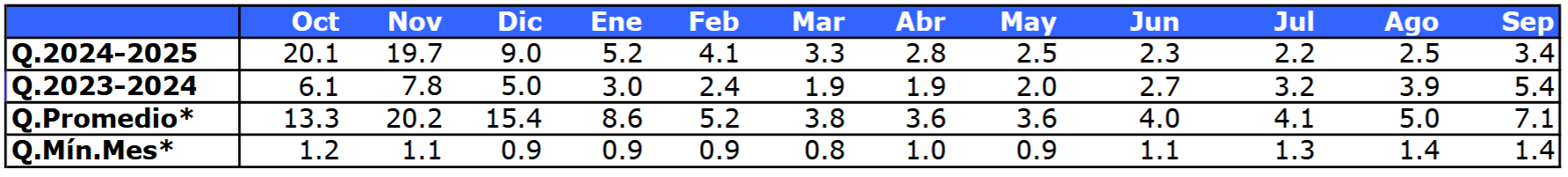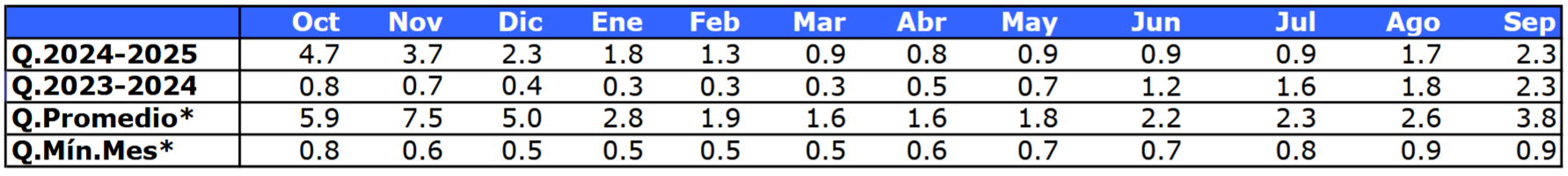 | Río | Septiembre 2025 (m³/s) |