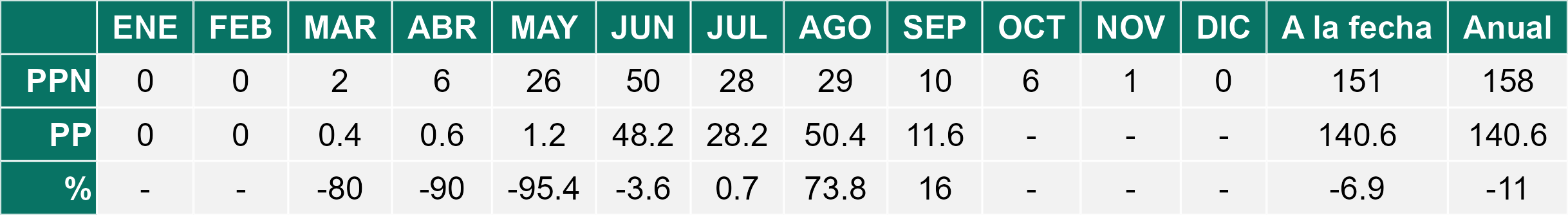 | Río Hurtado | 1,2 | 2,1 | -42,9% | 1,2 | 0,0% | 1,2 | 0,0% |