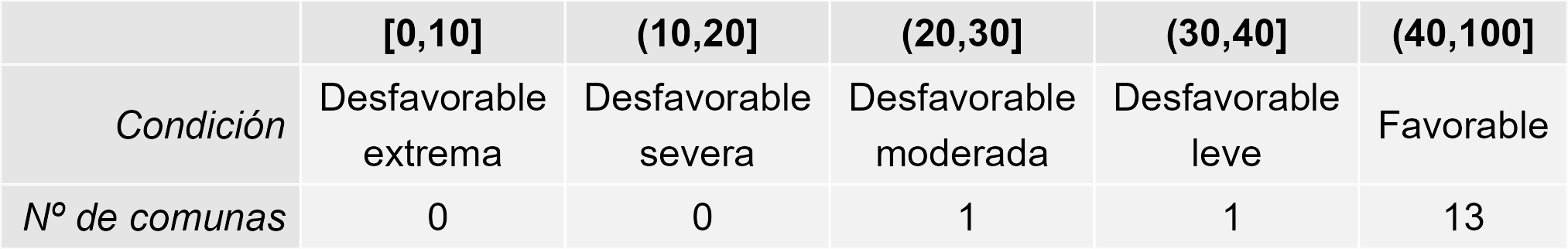 Tabla 2. Resumen de la condición de la vegetación comunal en la Región de acuerdo al análisis del índice VCI.