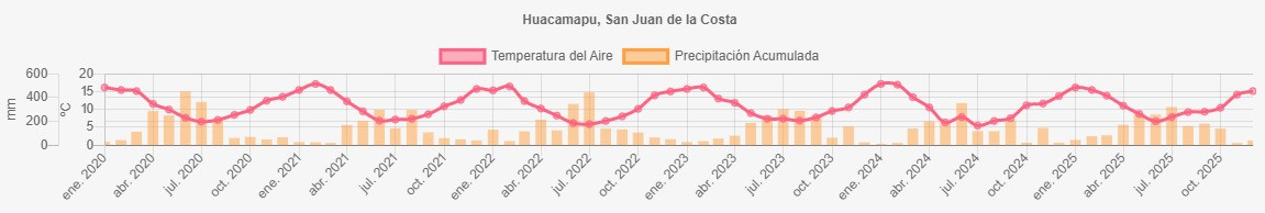 Datos de precipitaciones y temperatura en Huacamapu San Juan de la costa