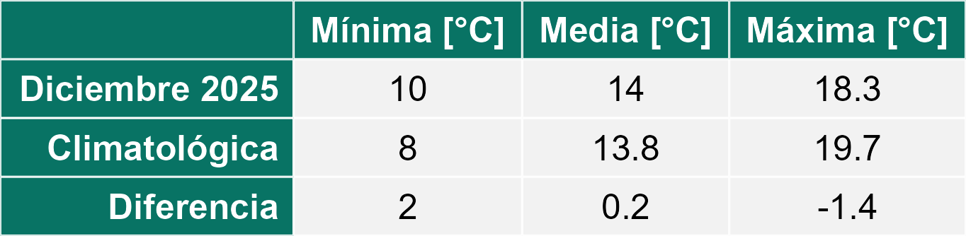 Durante diciembre, en la Región de Los Lagos se observó un déficit de precipitaciones en gran parte del territorio y temperaturas promedio superiores a las climatológicas. Este escenario, sumado a lluvias eventuales y días de alta radiación y temperaturas, incrementa el riesgo de estrés hídrico, además de la presencia de plagas y enfermedades.