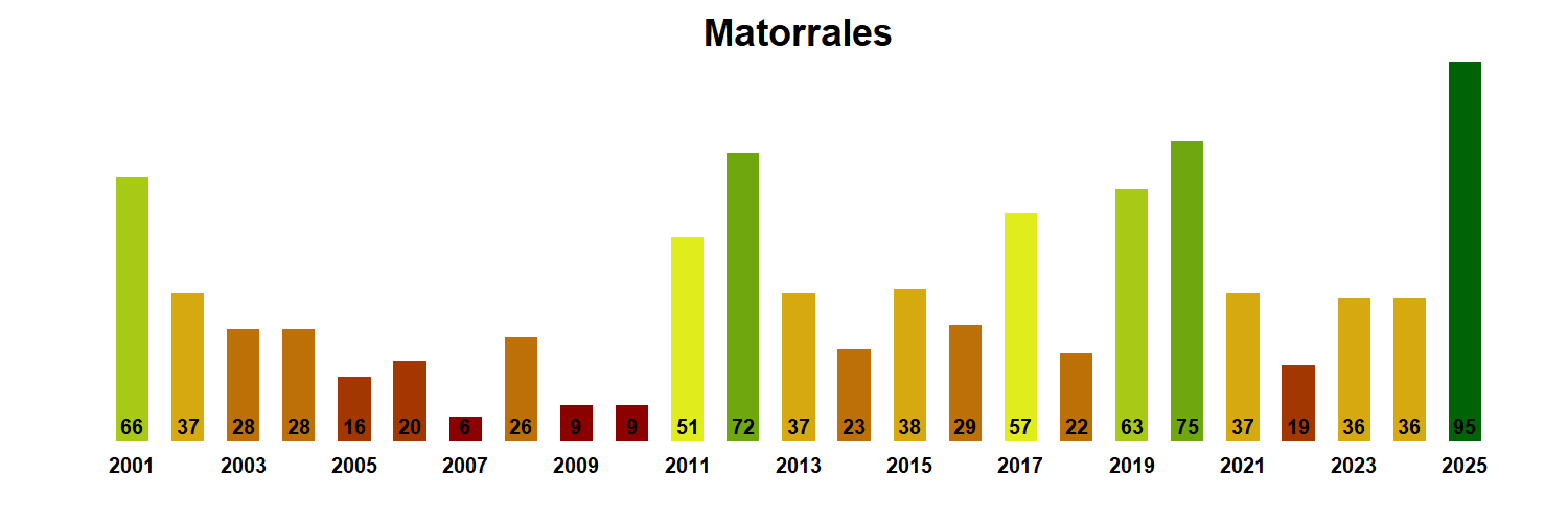 Figura 2. Valores promedio de VCI en Matorrales en la Región de Arica y Parinacota