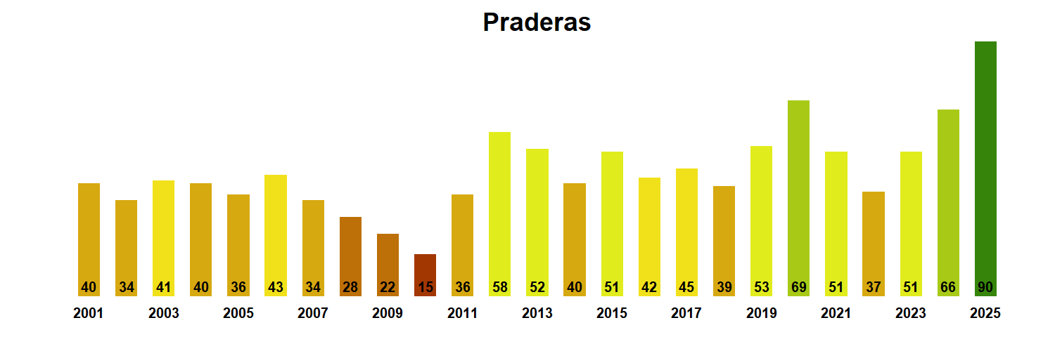 Figura 3. Valores promedio de VCI en praderas en la Región de Arica y Parinacota