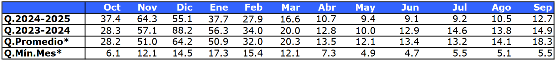 Boletín Información Pluviométrica, Fluviométrica, Estado de Embalses y Aguas Subterráneas (N° 569 septiembre 2025)