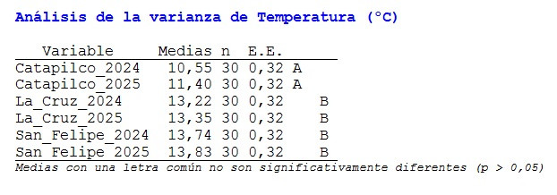 Figura 3.- Comparación de temperaturas medias del mes entre años en Catapilco, La Cruz y San Felipe