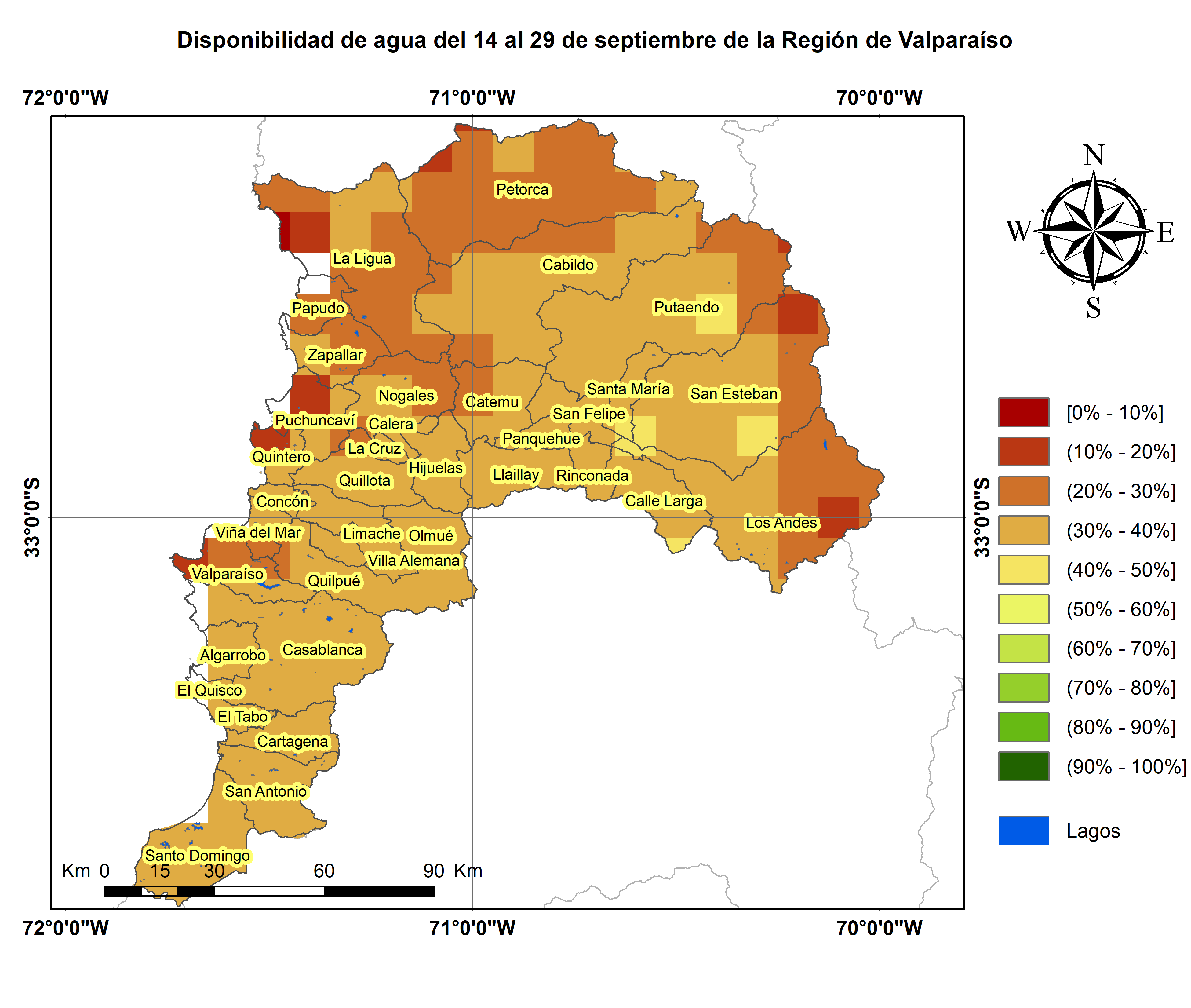 Para el monitoreo del estado de la vegetación en la Región se utilizó el índice de condición de la vegetación, VCI (Kogan, 1990, 1995). Este índice se encuentra entre valores de 0% a 100%. Valores bajo 40% se asocian a una condición desfavorable en la vegetación, siendo 0% la peor condición histórica y 100% la mejor (tabla 1).