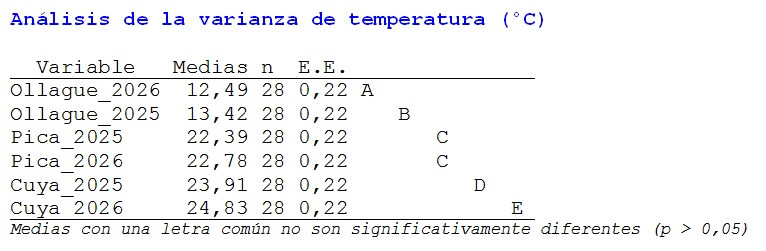 Figura 3.- Comparación de temperaturas medias del mes entre años en Cuya, Pica y Ollague.