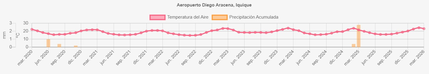 Datos de precipitaciones y temperatura en Aeródromo Iquique