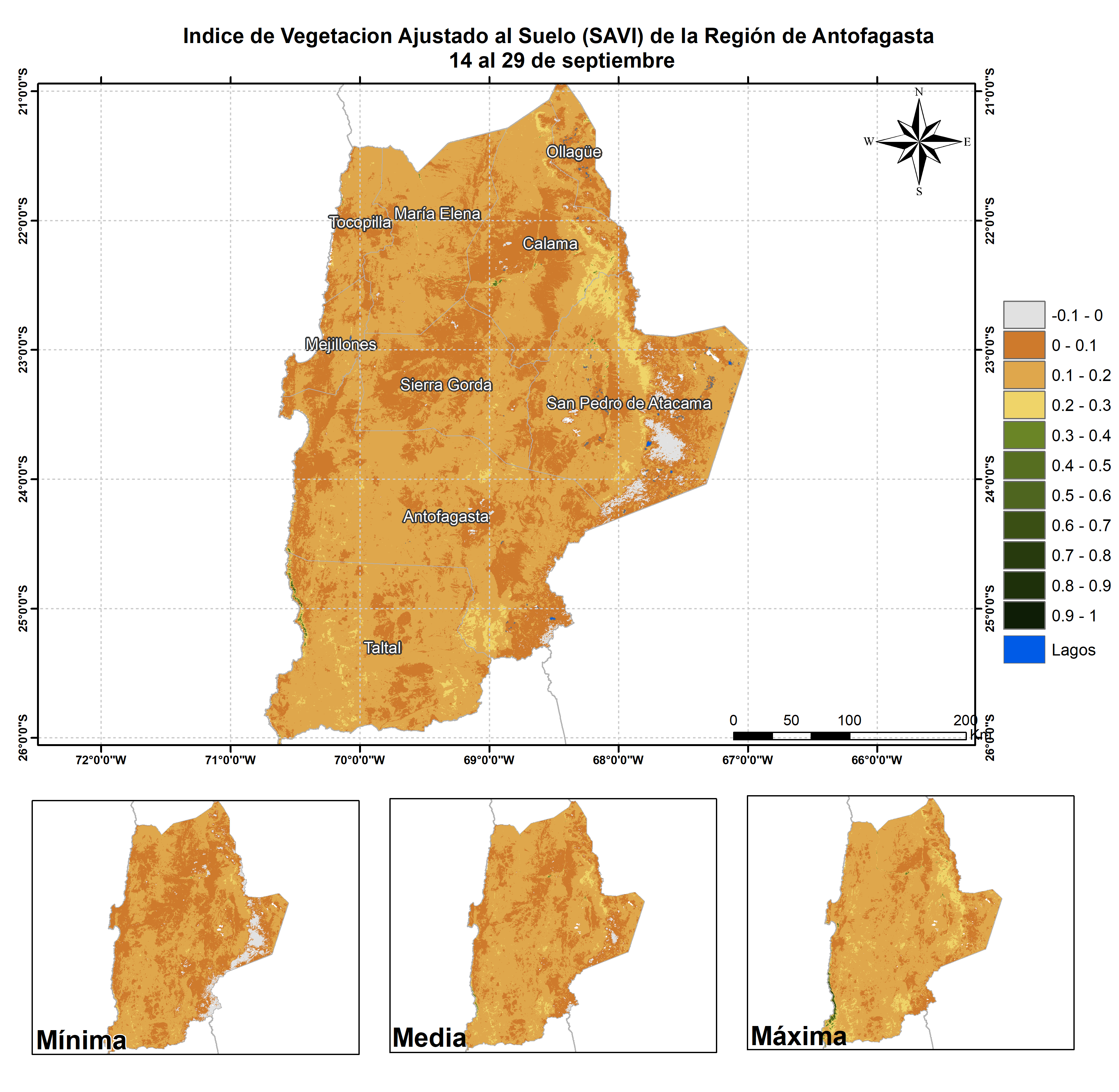 Respecto de la respuesta fisiológica de las plantas al efecto del clima, las imágenes satelitales reflejan la magnitud del crecimiento o disminución de la cobertura vegetal en esta época del año mediante el índice de vegetación SAVI (Desviación Normalizada del Índice de Vegetación Ajustado al Suelo).