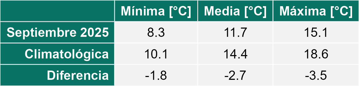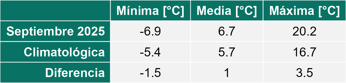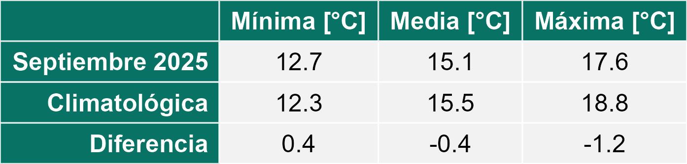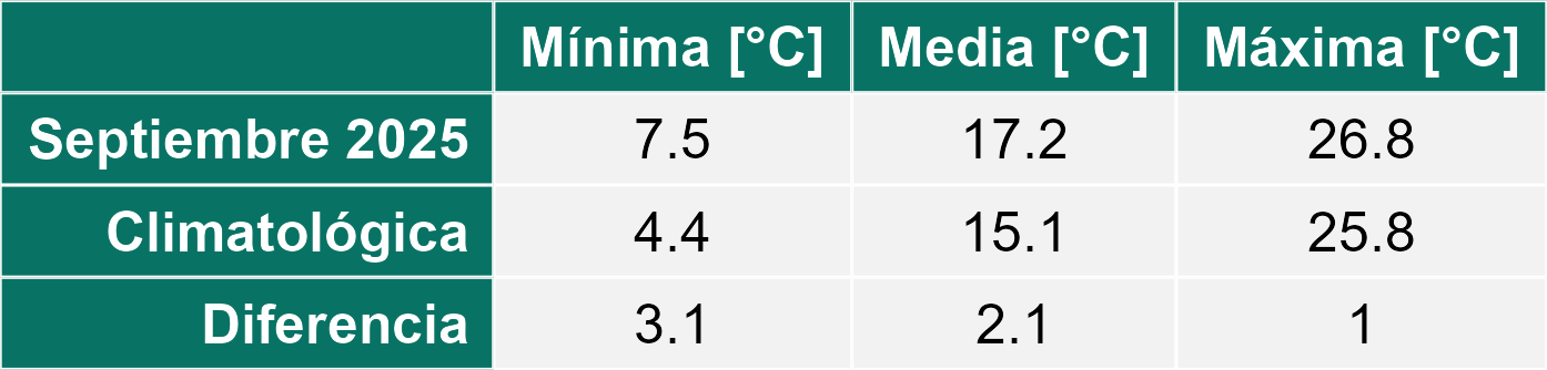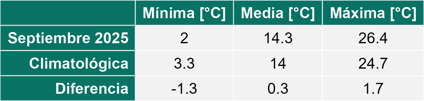 Durante el mes de septiembre, las condiciones meteorológicas en la Región de Antofagasta se caracterizaron por temperaturas propias del inicio de la primavera y ausencia de precipitaciones en todas las localidades monitoreadas.