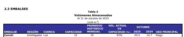 Según la Dirección General de Aguas (DGA), los acuíferos mantienen niveles y fluctuaciones que están dentro de lo normal al igual que el embalse Conchi.