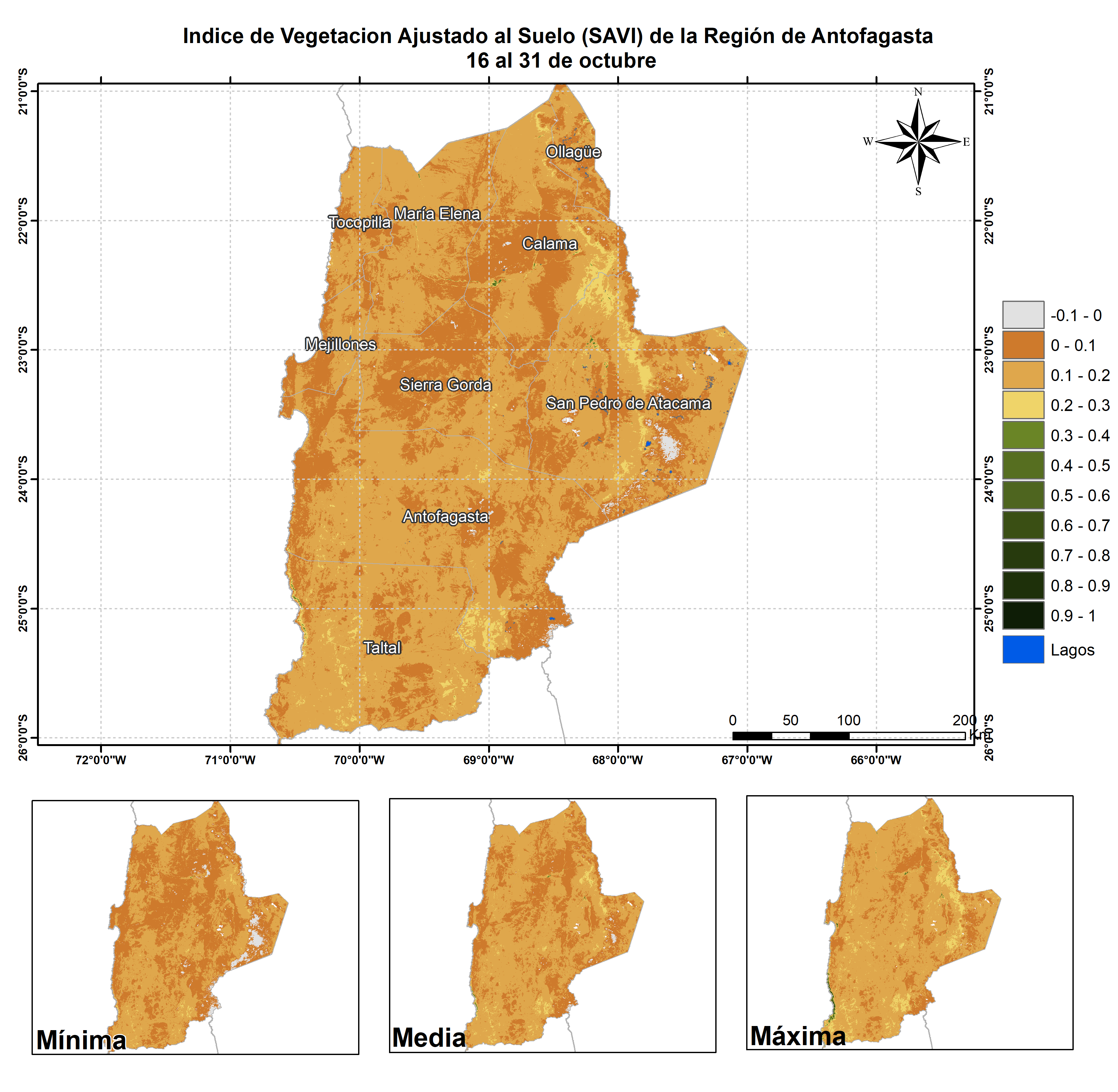 Respecto de la respuesta fisiológica de las plantas al efecto del clima, las imágenes satelitales reflejan la magnitud del crecimiento o disminución de la cobertura vegetal en esta época del año mediante el índice de vegetación SAVI (Desviación Normalizada del Índice de Vegetación Ajustado al Suelo).