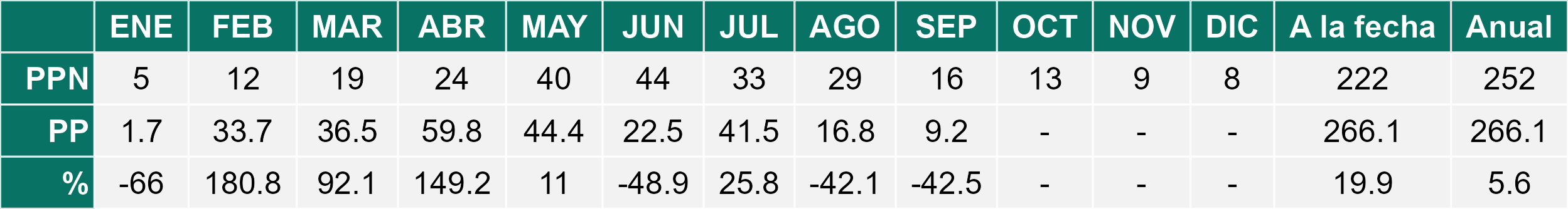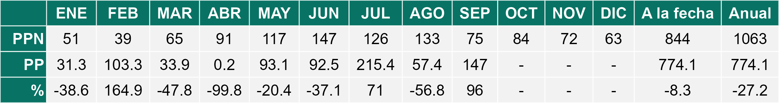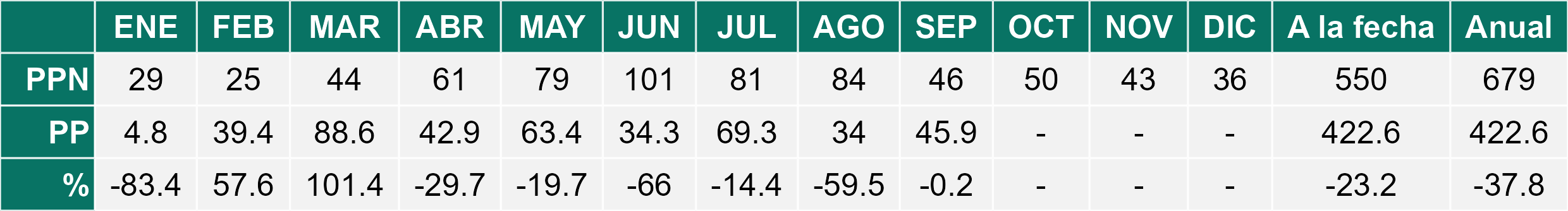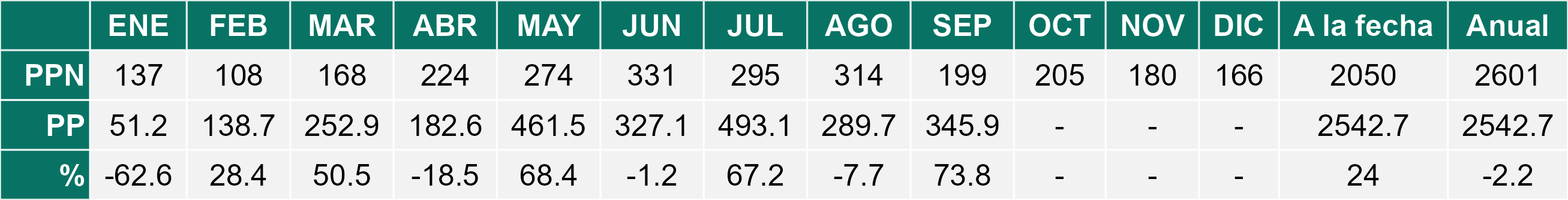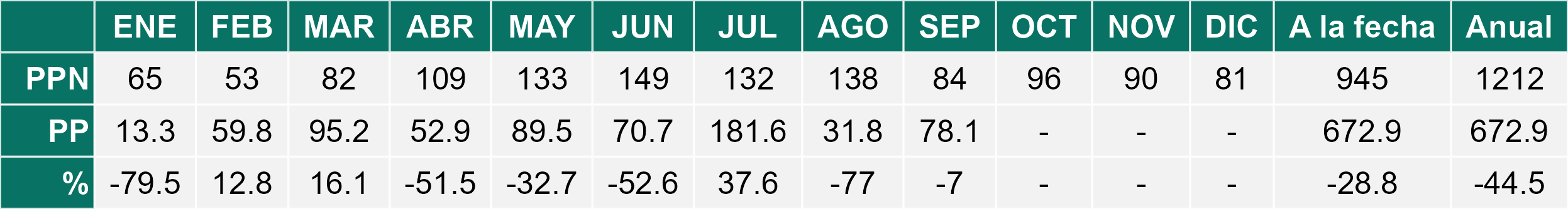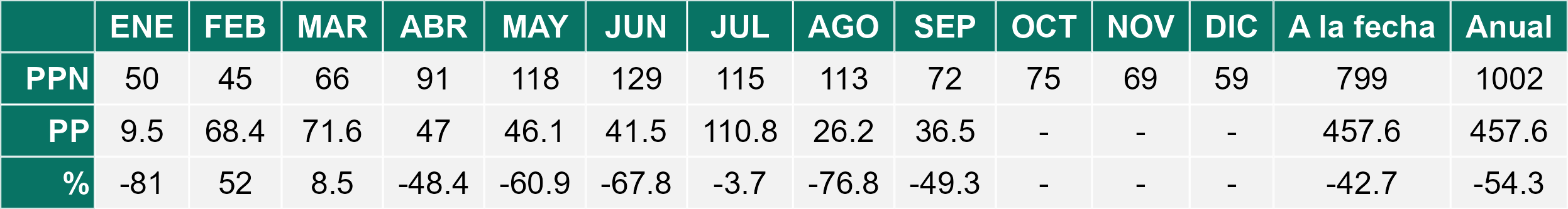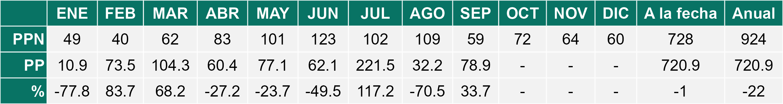 Durante el mes de septiembre de 2025 se registraron precipitaciones en la Zona Intermedia, Estepa, Micro clima y Húmeda, las que en promedio fueron de 72,2 mm., 54,8 mm, 16,8 mm., y 271,2 mm., respectivamente, lo que representó una condición de déficit hídrico en todas las macro zonas a excepción de la zona húmeda.