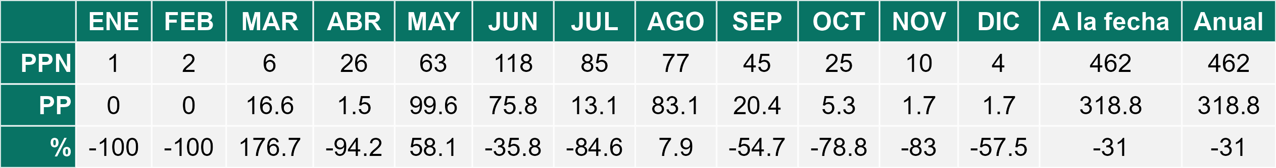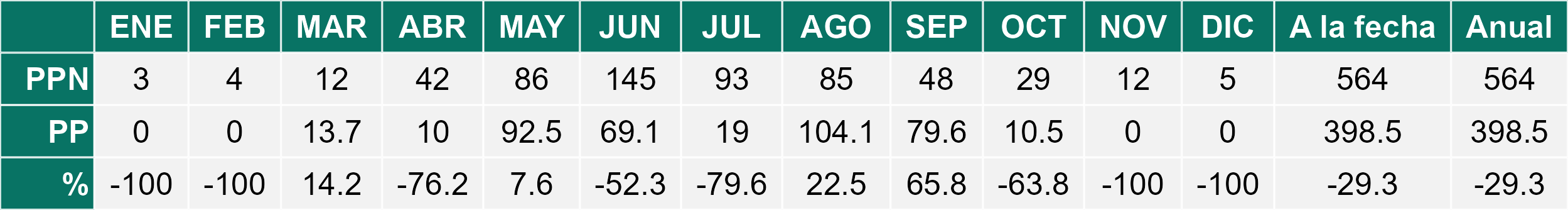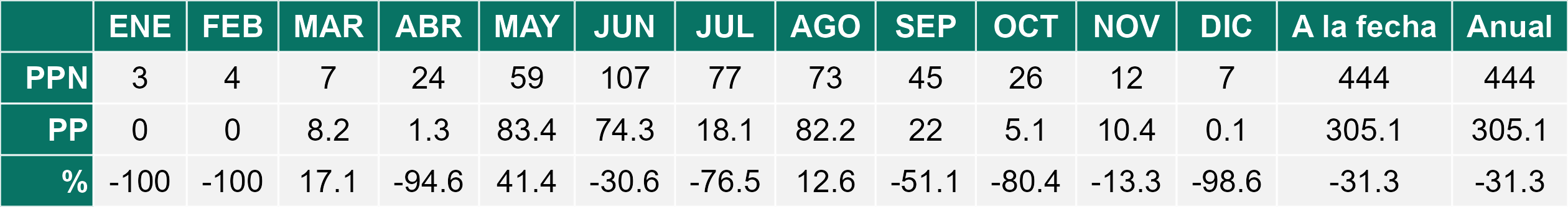 Durante el mes de Diciembre 2025 se registraron precipitaciones no significativas; con un promedio regional acumulado de 313,5mm. Registro similar al mes anterior.