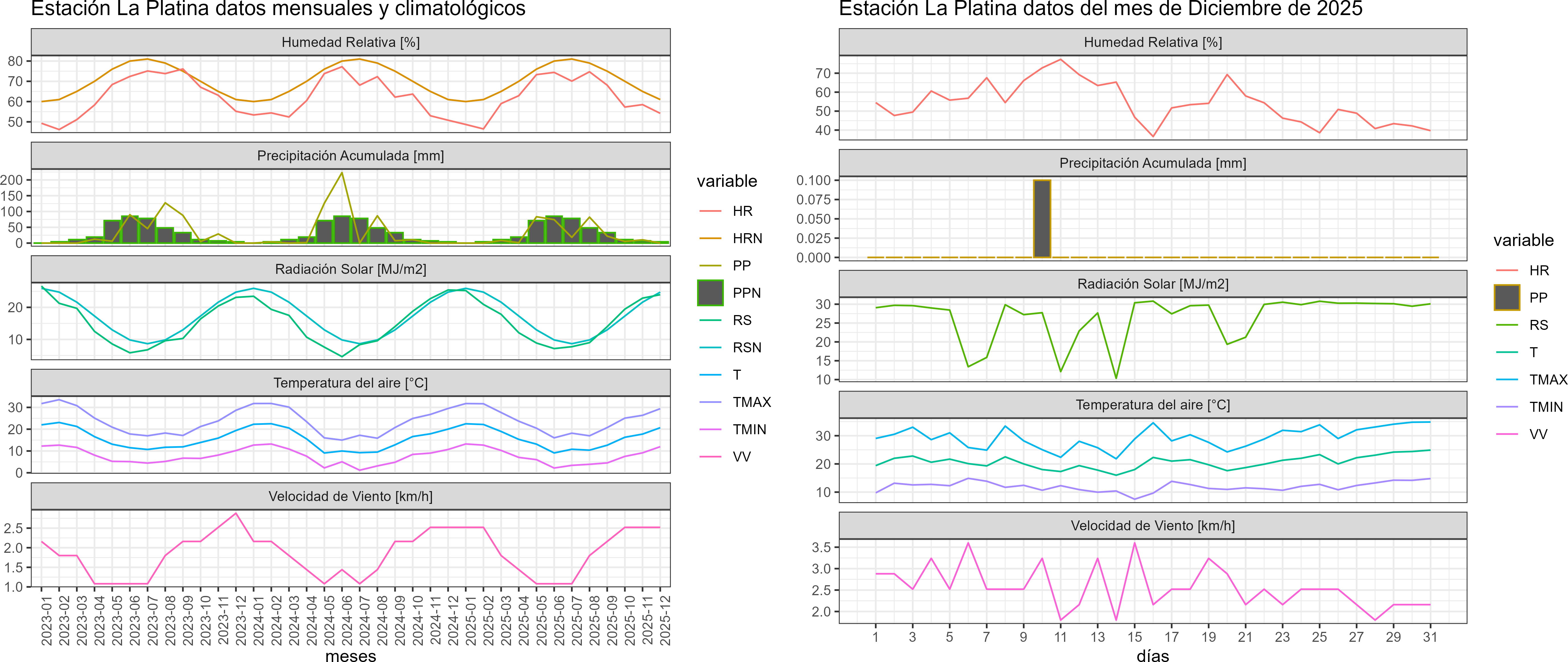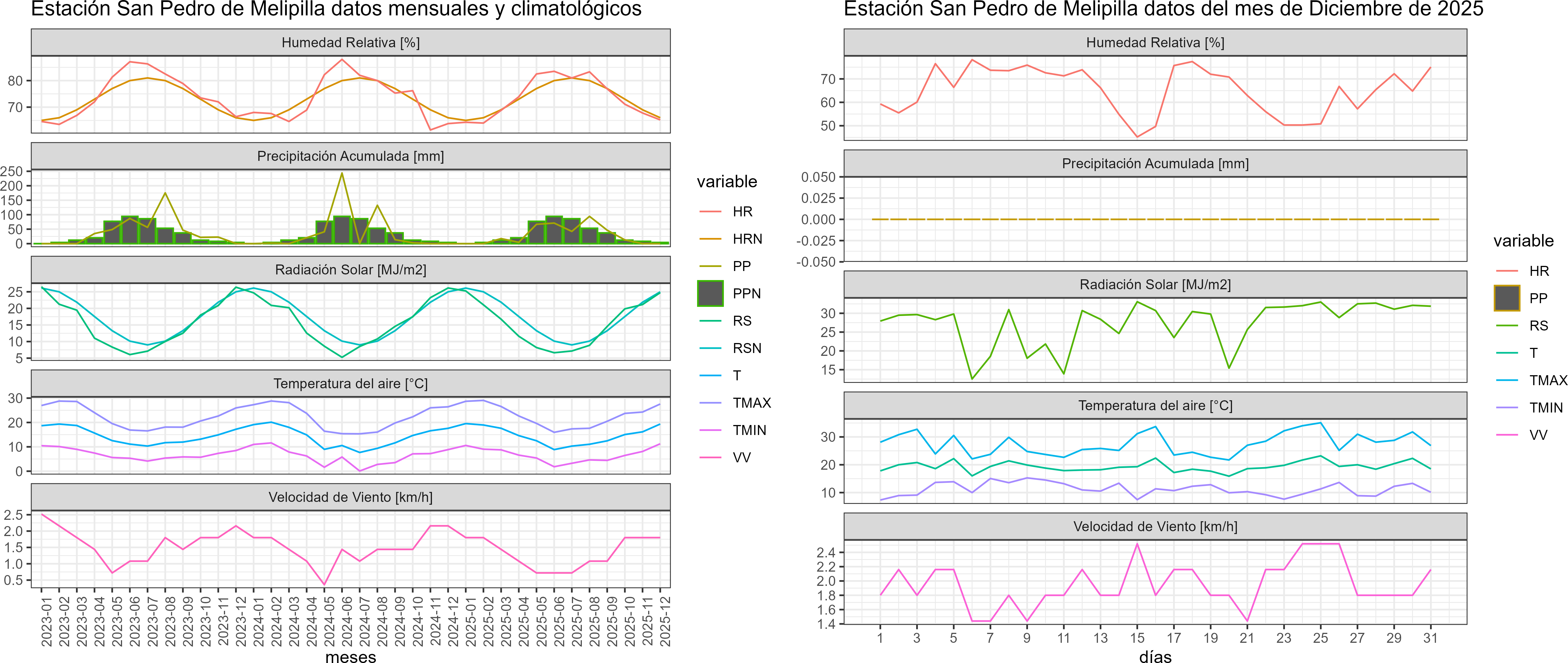 A continuación se analizan los registros de temperaturas promedios mensuales temperaturas extremas y precipitación de estaciones metereológicas de la Red Agromet.cl representativas de diferentes áreas agroecológicas de la Región Metropolitana. El análisis respectivo considera desde el 1 al dia 31 de Diciembre 2025.